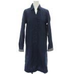 トミーヒルフィガー TOMMY HILFIGER シャツワンピース M ネイビー 開襟 ミモレ丈 /GG ■ECD001 レディース
