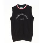 「TOMMY HILFIGER」 刺繍ノースリーブニット L ブラック レディース