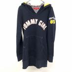 TOMMY GIRL トミーガール S レディース プルオーバー スウェットワンピース チュニック パーカー 後付けフード 裏毛 ロゴ 長袖 ネイビー 紺