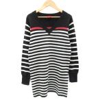 トミーガール tommy girl ニットチュニック 長袖 Vネック ボーダー柄 ウール混 M ブラック 黒 /YM30 レディース