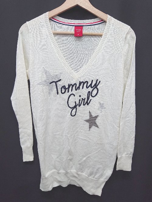 ◇ ⊇ tommy girl トミーガール Vネック コットン混 薄手 長袖 ニット セーター サイズM アイボリー系 レディース E 【中古】