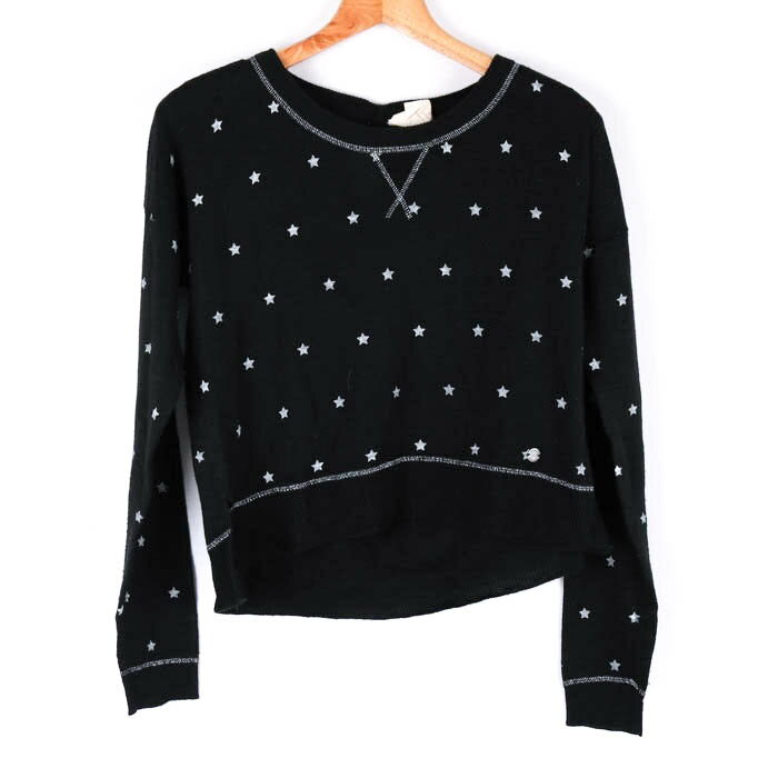 トミーガール ニット セーター 長袖 ドロップショルダー クルーネック 星柄 トップス 黒 レディース Sサイズ ブラック tommy girl 【中古】