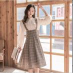 レディース ワンピース チェック レトロ トップス スカート セットアップ