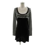 トミーガール tommy girl ワンピース Uネック 長袖 ミディ丈 切替え ロゴプリント ボーダー グレー ブラック 黒 S レディース