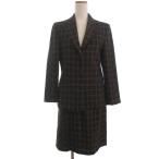 トラサルディ TRUSSARDI セットアップ チェック スカートスーツ ウール ダークブラウン 40 42 ■GY47 レディース