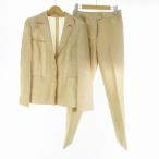 トラサルディ TRUSSARDI 40 セットアップ スーツ 上下 ジャケット テーラード パンツ ベージュ 麻 リネン ウール レディース