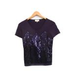 トラサルディ TRUSSARDI カットソー Tシャツ 半袖 チュール スパンコール 38 パープル 紫 /KT16 レディース