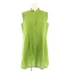 トラサルディ TRUSSARDI チュニック シャツ ブラウス ノースリーブ スタンドカラー ワンカラー 38 黄緑 ライトグリーン /BB ■GY61