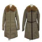 トラサルディ TRUSSARDI ダウンコート リバーシブル 40 ベージュ 茶 ブラウン ファー襟 チェック柄 /GP ■ECD002 レディース