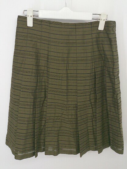 ◇ TRU TRUSSARDI シルク混 ボーダー 膝丈 プリーツ スカート サイズ38 カーキ系 ブラック レディース P 【中古】