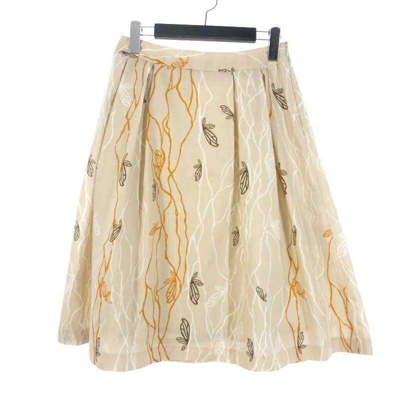 【中古】トラサルディ TRUSSARDI ボタニカル柄 総柄 ひざ丈 スカート 38 ベージュ レディース 【ベクトル 古着】 250117