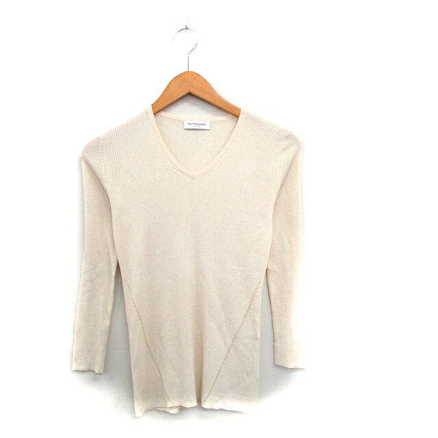【中古】トラサルディ TRUSSARDI リブ ニット セーター 長袖 Vネック シルク シンプル 38 アイボリー 白 /KT20 レディース 【ベクトル 古着】 250515