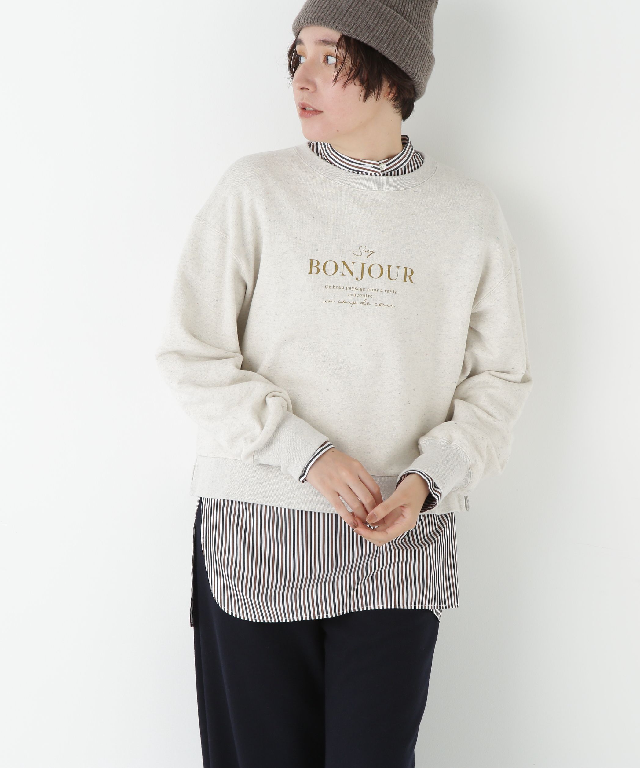 トレーナー スウェット 「JaVaジャバコラボ」抜け感纏い、センスで遊ぶ。ロゴ袖刺繍&グラフィック裏起毛プルオーバー レディース