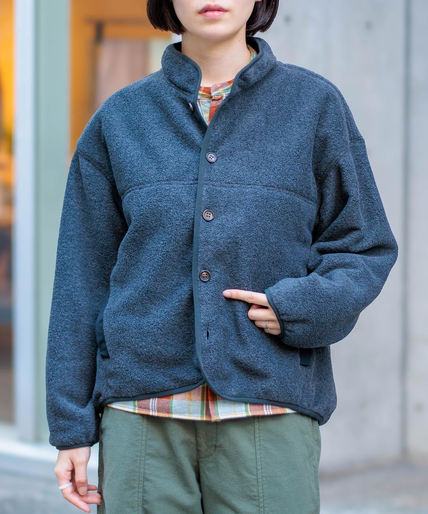 ドミンゴ コットンフランネル BIGポケット ワイドノーカラーシャツ DMG 長袖トップス ライトジャケット アウター ディーエムジー