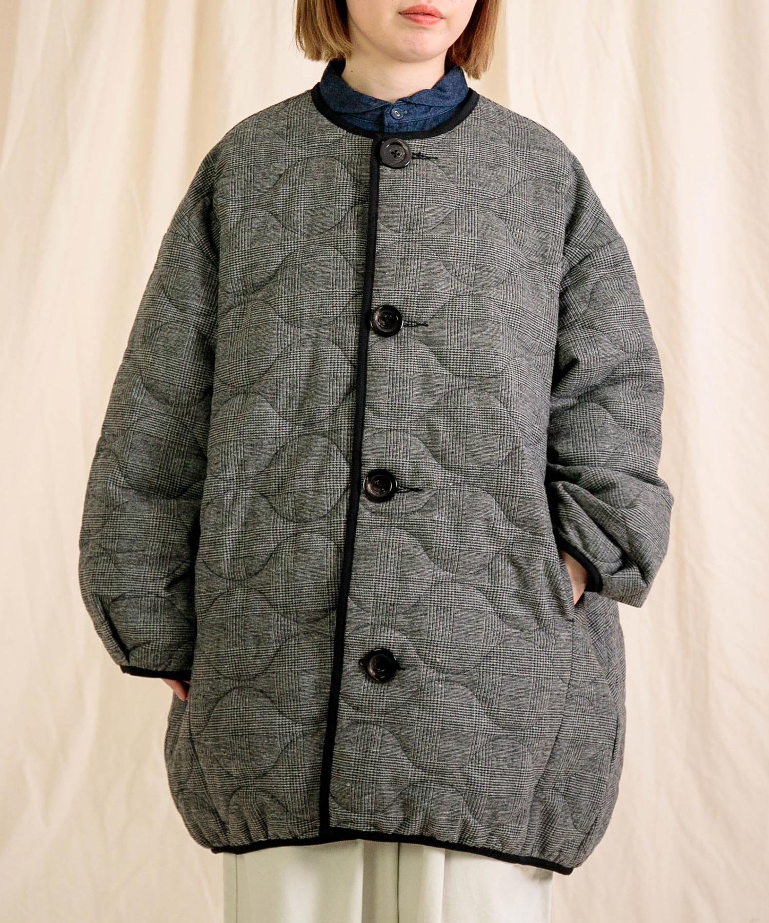 Brocante グレンチェック キルトココンコート ドミンゴ ジャケット・アウター ダウンジャケット・ダウンベスト ブラウン グレー【送料無料】