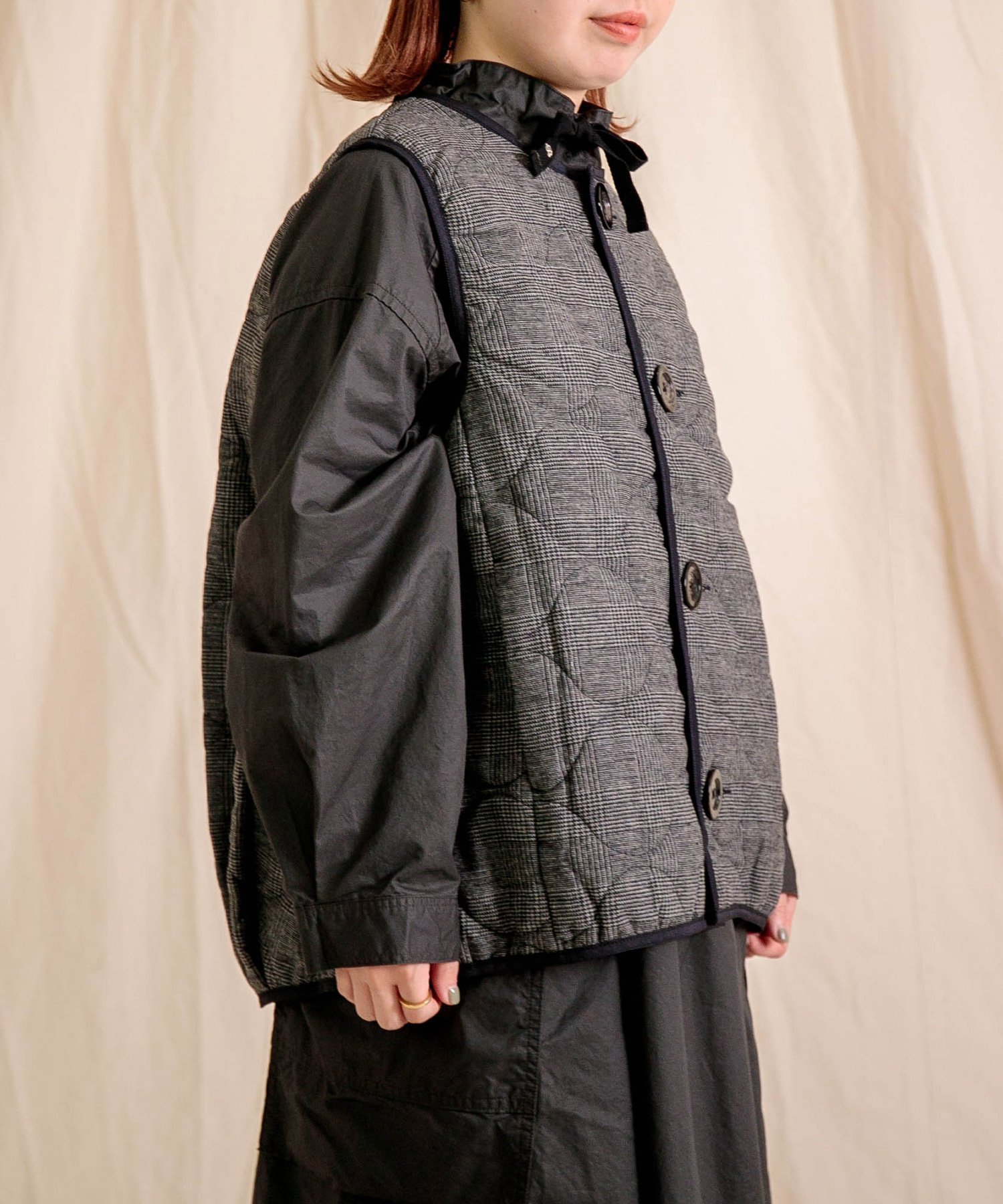 Brocante グレンチェック キルトココンジレ ドミンゴ ジャケット・アウター ダウンジャケット・ダウンベスト ブラウン グレー【送料無料】