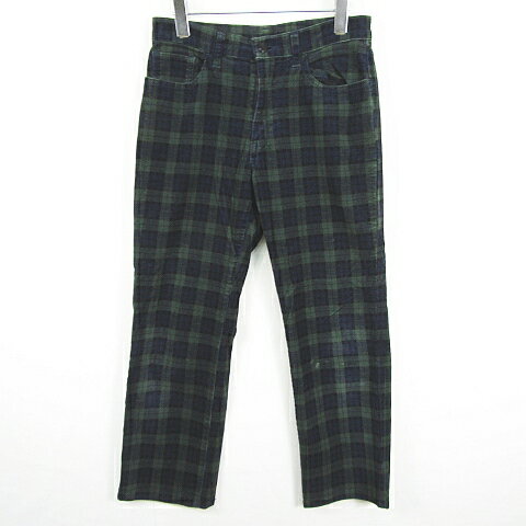 【中古】ドミンゴ Domingo SIMPLICITY コーデュロイ パンツ ストレッチ 綿 L グリーン ブルー チェック kz12722 レディース 【ベクトル 古着】 250829