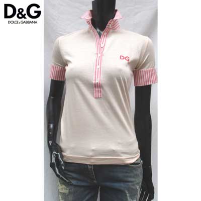 ドルチェ&ガッバーナ DOLCE&GABBANA ドルガバ レディース トップス ポロシャツ 半袖 ロゴ ネック/袖口部分ストライプ柄・DGロゴ刺繍付ポロシャツ ドルガバ ピンク F8382T G7552 S9001 XTU 07S【送料無料】【smtb-TK】