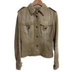 美品 DOLCE&GABBANA ドルチェ&ガッバーナ 裏地レオパード柄 ヴィンテージ加工 デニムジャケット ブルゾン サイズ40 ベージュ レディース 古着 中古