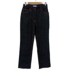 美品 DOLCE&GABBANA ドルチェ&ガッバーナ レッドステッチ ストレート デニムパンツ ジーンズ 40 ブラック レディース 古着 中古