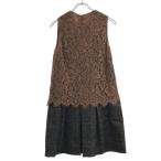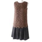 【ドンドン見直し】美品◎正規品 イタリア製 DOLCE&GABBANA ドルチェ&ガッバーナ レース×ツイードプリント ノースリ ドッキングワンピース ブラウン系 40【中古】