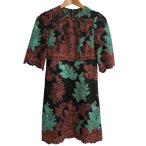美品 DOLCE&GABBANA ドルチェ&ガッバーナ 総柄 刺繍 エンブロイダリーレース 半袖 ひざ丈 ドレス ワンピース 36 マルチカラー レディース 古着 中古