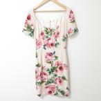 美品 ドルチェ&ガッバーナ フローラルプリント 裏地シルク 半袖 ひざ丈 オフショルダードレス ワンピース サイズ36 ピンク レディース 古着 中古