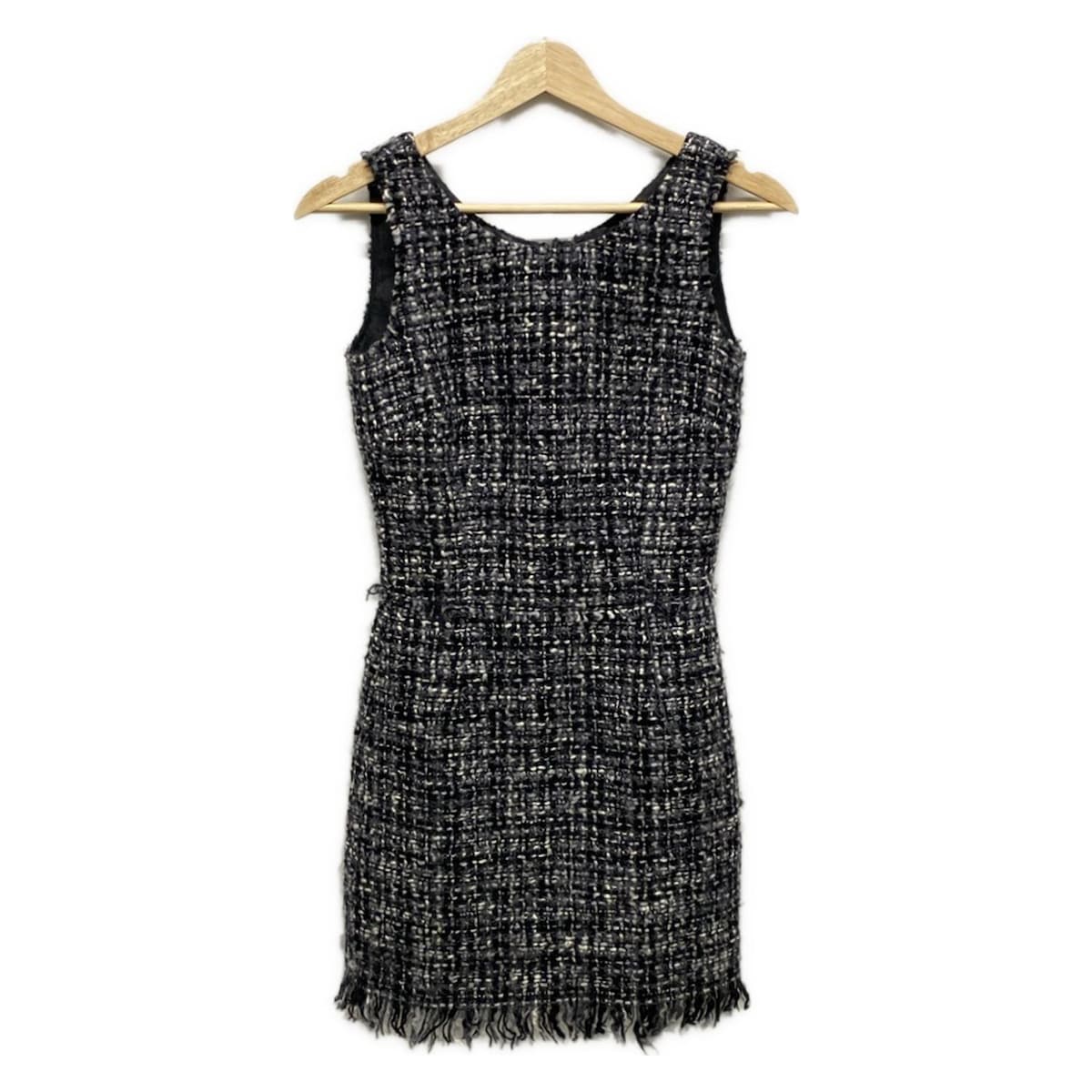 【中古】DOLCE&GABBANA(ドルチェアンドガッバーナ) ワンピース ノースリーブ/ひざ丈/ツイード グレー×黒×マルチ