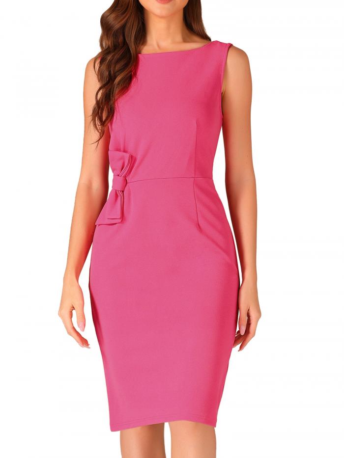 【期間限定10%OFF】Allegra K レディース タンクドレス スクープネック ノースリーブ ヴィンテージ ビジネス ウェディングドレス ホットピンク M