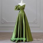 カラードレス グリーン 緑 オフショルダー 前撮り 披露宴 ロングドレス 結婚式 二次会 発表会 演奏会 ウェディングドレス ウエディングドレス Aラインドレス