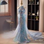 カラードレス スパンコール マーメイドドレス ブルー 青 パーティードレス ウェディングドレス ウエディングドレス 結婚式 二次会 花嫁 前撮り 発表会