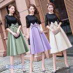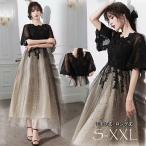 ロングドレス ミモレ丈ドレス ブライズメイドドレス パーティードレス キラキラ ワンピース 袖付き ドレス 半袖 結婚式 二次会 花嫁 母親