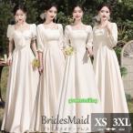 ブライズメイド ドレス ロングドレス アイボリー 演奏会 ピアノ発表会 スクエアネック Aライン ワンピース レディース 袖付き 春秋 きれいめ