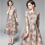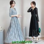 パーティードレス レディース 結婚式 お呼ばれドレス 透け感 レース 袖あり 長袖 マキシ丈 ロング ワンピースドレス ドレス 披露宴 パーティー