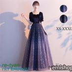 ロングドレス 演奏会 袖付き キラキラ 半袖成人式同窓会卒業式大人 ピアノ 発表会ドレス Aライン結婚式ステージ二次会花嫁母親 パーティードレス ウエディング