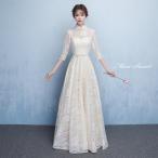 カラードレス ファスナー 長袖 シャンパン ウェディングドレス ウエディングドレス 総レース ロングドレス 結婚式 二次会 披露宴 花嫁 ブライダル ハイネック