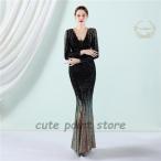マーメイドドレス パーティードレス ナイトドレス ロング丈ドレス Vネック ウエディングドレス 演奏会 結婚式 忘年会 二次会 披露宴 ピアノ イベント用 袖あり