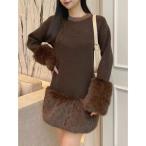 ワンピース 大人のリラックスムード。ふわもちミックスカラー配色ブークレーニットワンピース