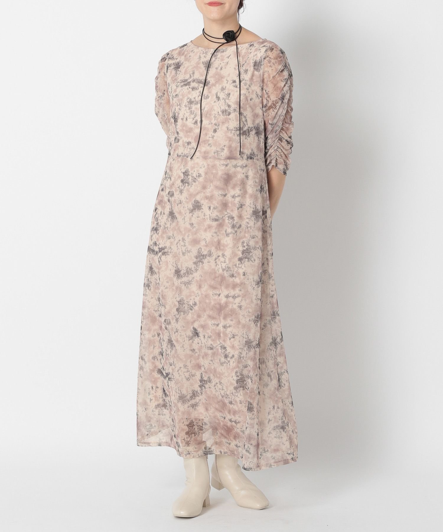 ワンピース タックデザインミモレ丈カットソーワンピース