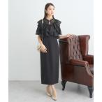 ワンピース 「mily bilet」華やかさと上品さを纏う。パール使いレースカラーニットワンピース