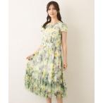 ワンピース レイヤーフィオーレプリント プリーツドレス