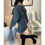 ワンピース ボリュームスリーブバックリボンニットタイトミニワンピース
