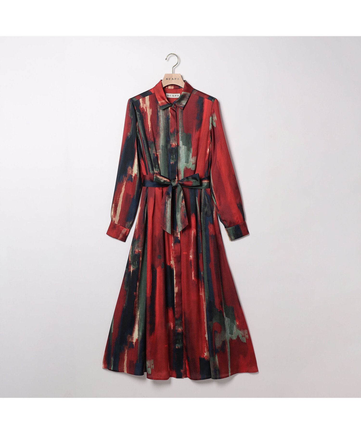 【SALE/52%OFF】SCAPA アブストラクトビンダワンピース スキャパ ワンピース・ドレス ドレス オレンジ【送料無料】