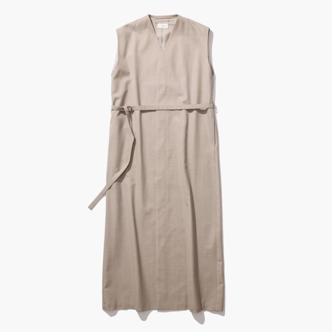 \期間限定10%OFF/ ATON|エイトン WOOL SILK TWILL | GILET DRESS BEIGE (AT-OPAGLM0107) 26SS 26春夏 ワンピース ドレス ロングドレス