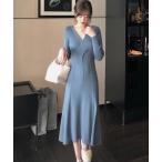 ワンピース レディース ドッキング カシュクール マーメイドニット ワンピース きれいめ フレア裾