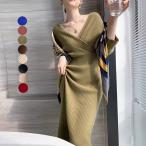 カシュクールニットワンピース 韓国風【在庫限り】売り尽くしセール