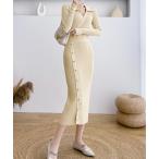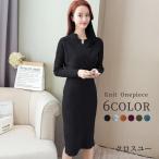 【宅配便で送料無料】【レビューを書いて10%OFFクーポンGET】 2WAY ワンピース ニットワンピース タイトワンピース ミモレワンピース ロングワンピース リブニット Vネック カシュクール ミモレ丈 ロング丈 肌見せ きれいめ セクシー 長袖 厚手 無地 大人 秋 冬 レディース