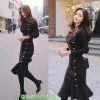 ワンピース レディース ドッキング カシュクール マーメイドニット ワンピース きれいめ フレア裾