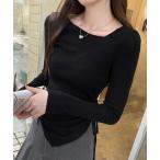 tシャツ カシュクールリブニットプルオーバー レディース