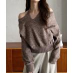 ニット セーター 「Eclat one」オフショルダー風 メランジ カシュクールニット レディース